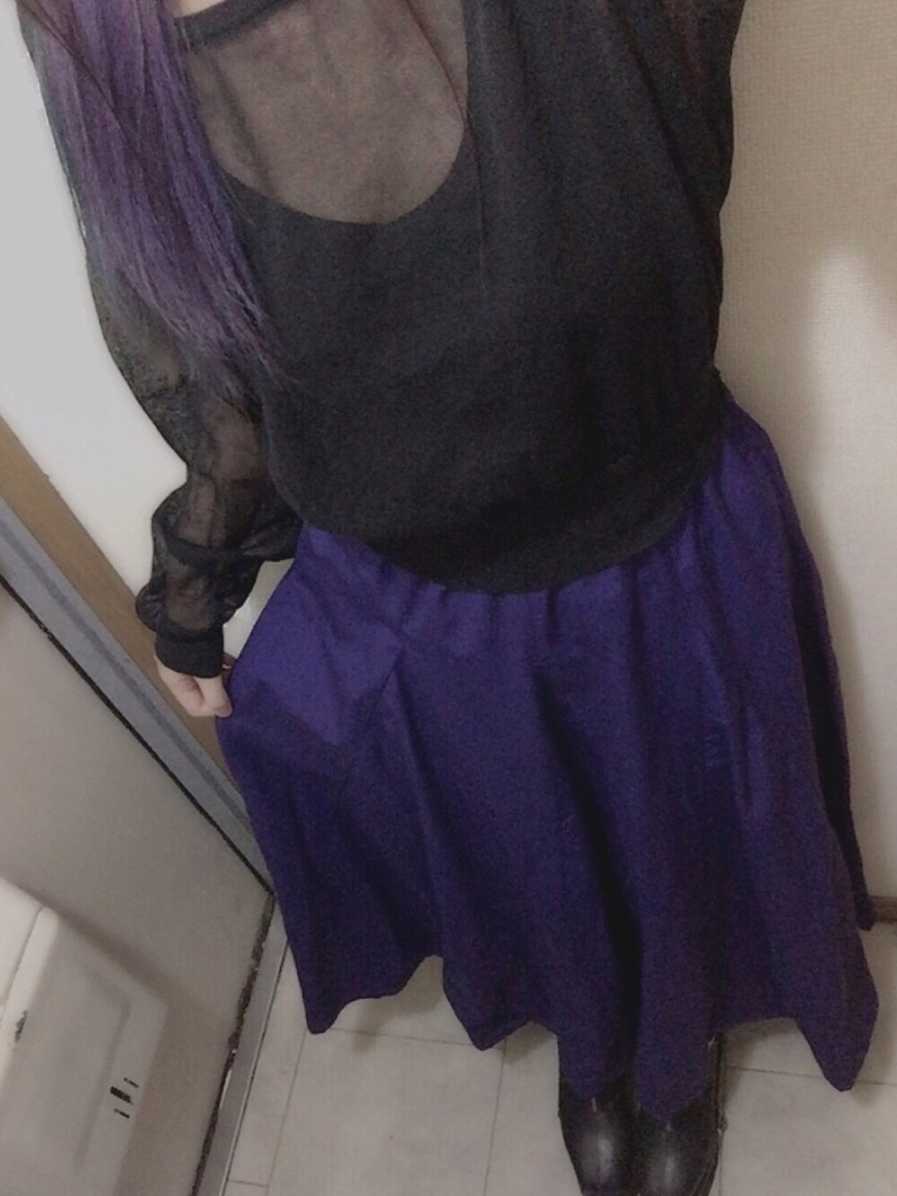 2019/05/12 めちゃくちゃ久しぶりのコーデ投稿 紫のスカートお気に入り💟 紫大好きマンなので髪の毛も紫です