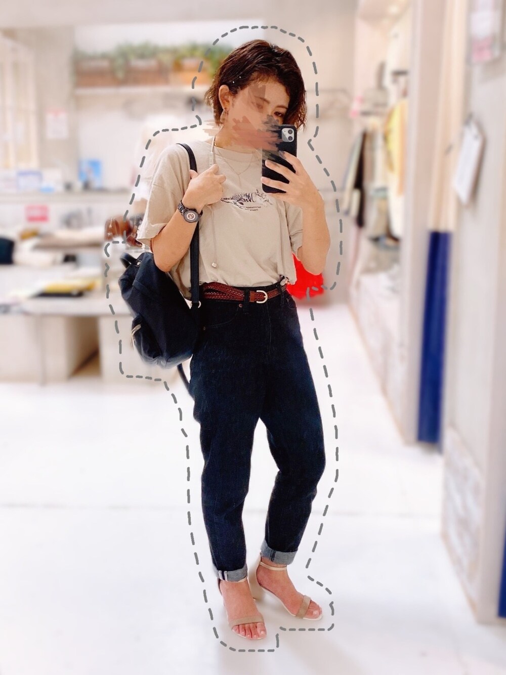 ホワイトタイガーのアニマルTが着たくてデニムにinコーデ♡ ちょっと子供っぽくリュック持ちたくなったので、あとはブラックデニムときれい目サンダルでバランスを取ります˙-˙(笑)