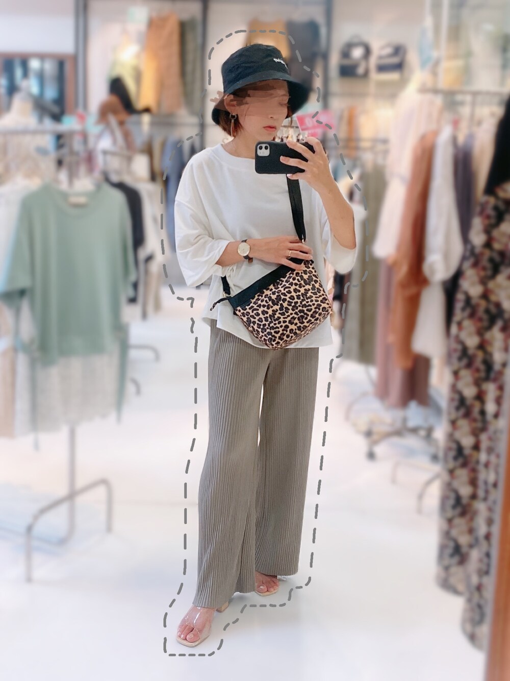 シンプルだけどトレーナー素材で存在感のあるトップス+こちらもラフなリブパンツ合わせ♡ そうゆー時は、バケハ+クリアサンダル+柄バッグで調整😉✌️ 本日2投稿目、こっちがリアルタイム☺️💕 最近写真撮ってもアップする暇なかったり、、