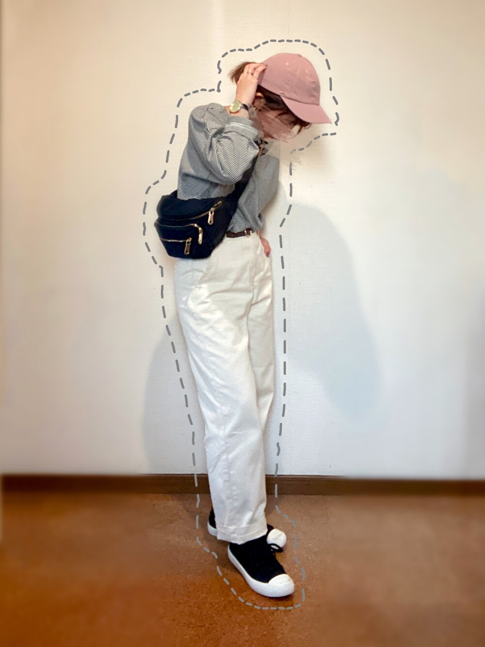 ボーダーロンT×白デニム合わせ♡ わりとシンプル🤔 でもボーダーのカットソー地味に惹かれる🤣w あえてのピンクキャップ🙋♀️