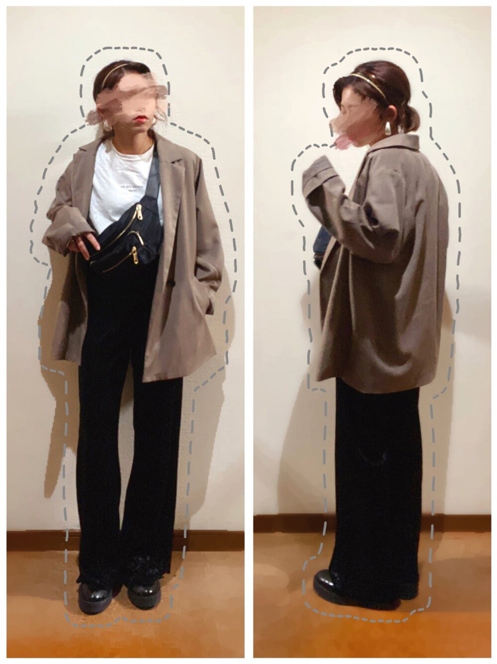 テーラードジャケット×フレアベロアパンツ合わせ♡ ジャケット+Tシャツでシンプルにしてダマスク柄のベロアパンツがPoint😉💅
