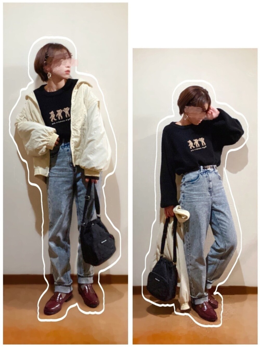 くまニット×ハイウエストデニム合わせ♡ 去年買ったくまさんニットたまーに着たくなるやつ🤣✌️ というか、今季のGUのマムデニムが最強ですっ🤣 サイズが合ってるのか分からないけどニットとかトレーナーinできるしいっかな👍笑 またまた2色いっちゃいました🥺 なんだろうか、最近古着っぽい感じとかスポーティなコーデが好きです☺️💕