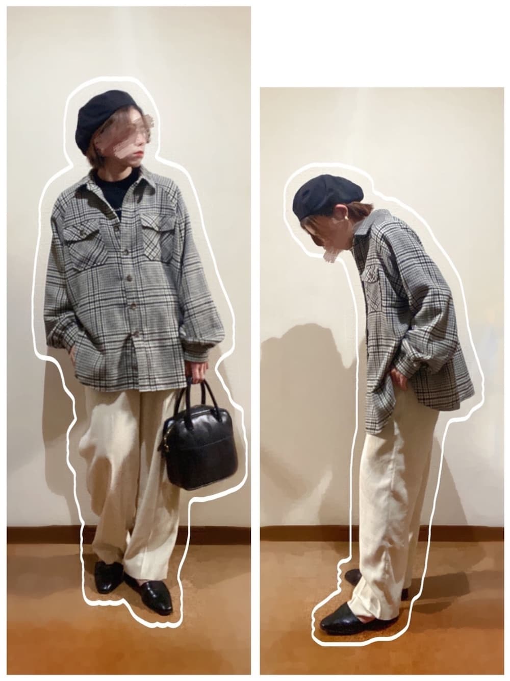 チェックシャツジャケット×白ワイドパンツ合わせ♡ チェックシャツジャケットは昨日のガングラフの柄違いです🤗 最近ストレートのとろみのある感じの綺麗目ワイドパンツにハマっています🥺💕