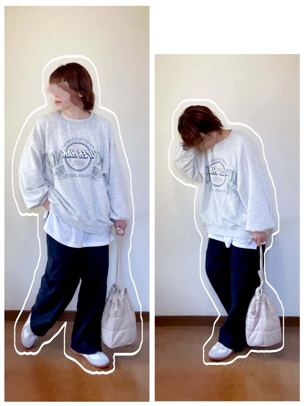 ロゴスウェット×チノパン合わせ♡ メンズライクにシンプルなラフコーデ💁♀️💕 仲の良い友達と遊ぶ時ほどゆるーくこんな感じになる😂笑
