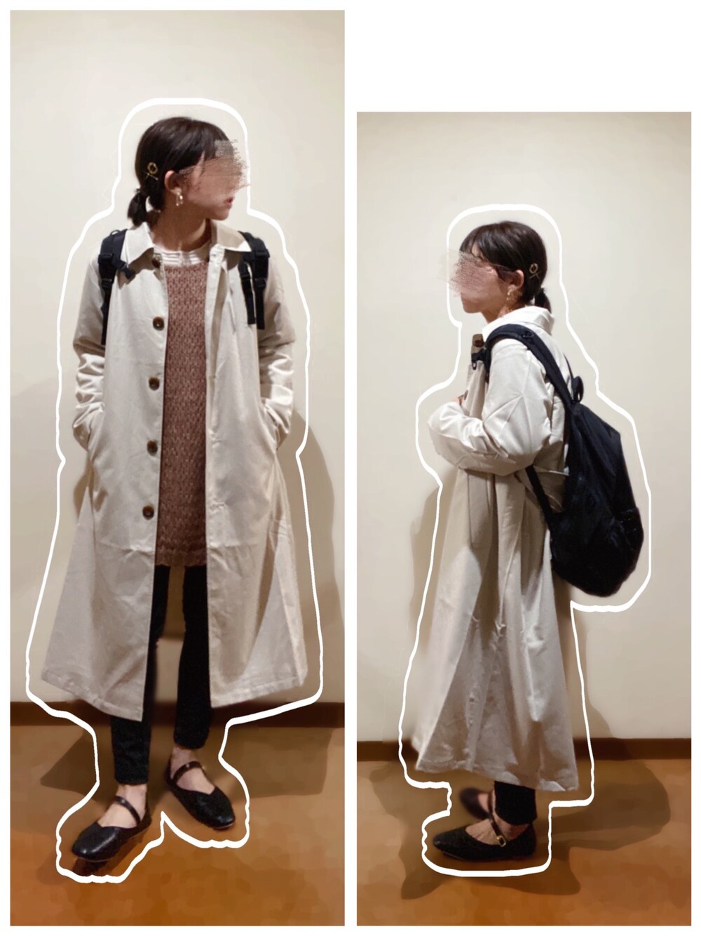 ステンカラーコート×カンフーシューズ合わせ♡ 欲しかったステンカラーコートを見つけましたっしかもセールで超プチプラ🤭笑 今日はしまむらで買ったカンフーシューズ?みたいなフラットパンプスと合わせてマニッシュだけどガーリーもプラス💁♀️💕
