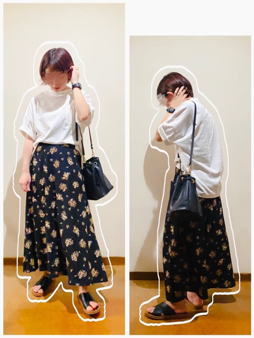 白ポケT×花柄フレアスカート合わせ♡ 白Tに柄スカートの定番スタイル🤗💕 小花柄とか好きなんだけど自分の好みにコーデするのがちょっと難しいです🤭 ブーケっぽい花柄ならいけるかも?笑