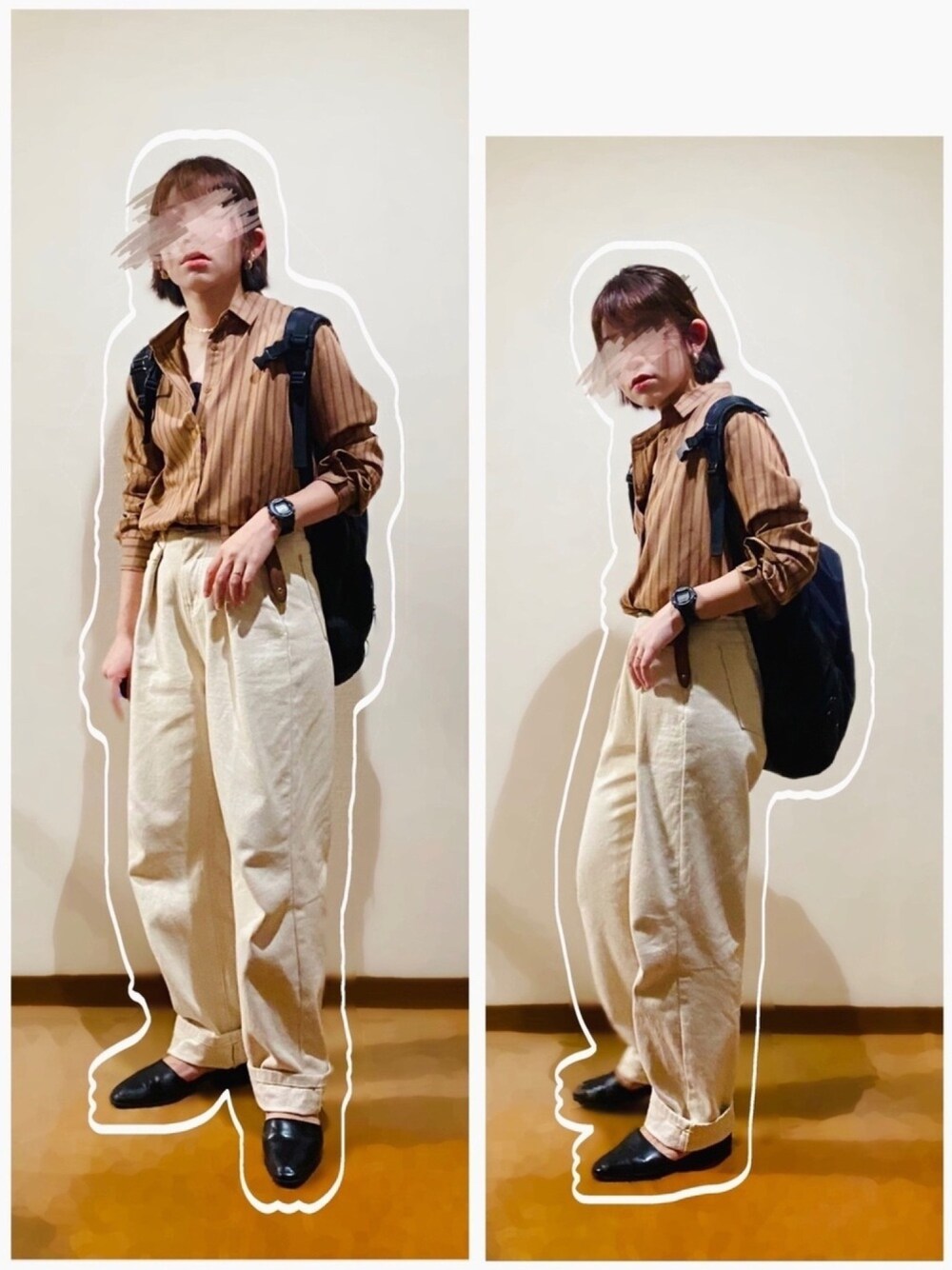 ストライプシャツ×タックデニムパンツ合わせ♡ たまにはジャストサイズのシャツも着てみましたー😉 タックパンツはINした時のウエスト部分が可愛くて好きです♬
