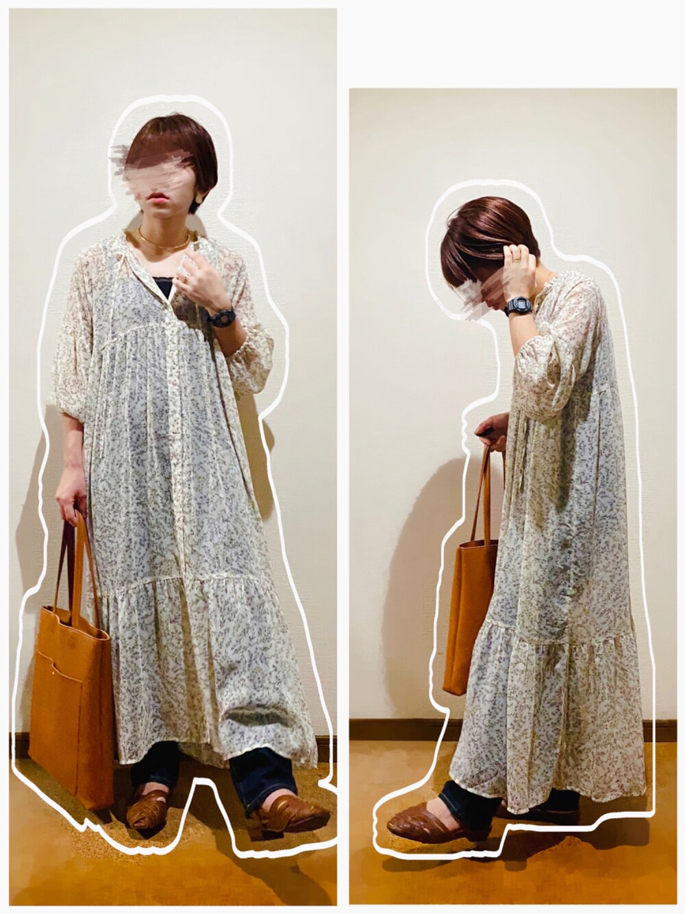 小花柄ロングワンピ×ストレートデニム合わせ♡