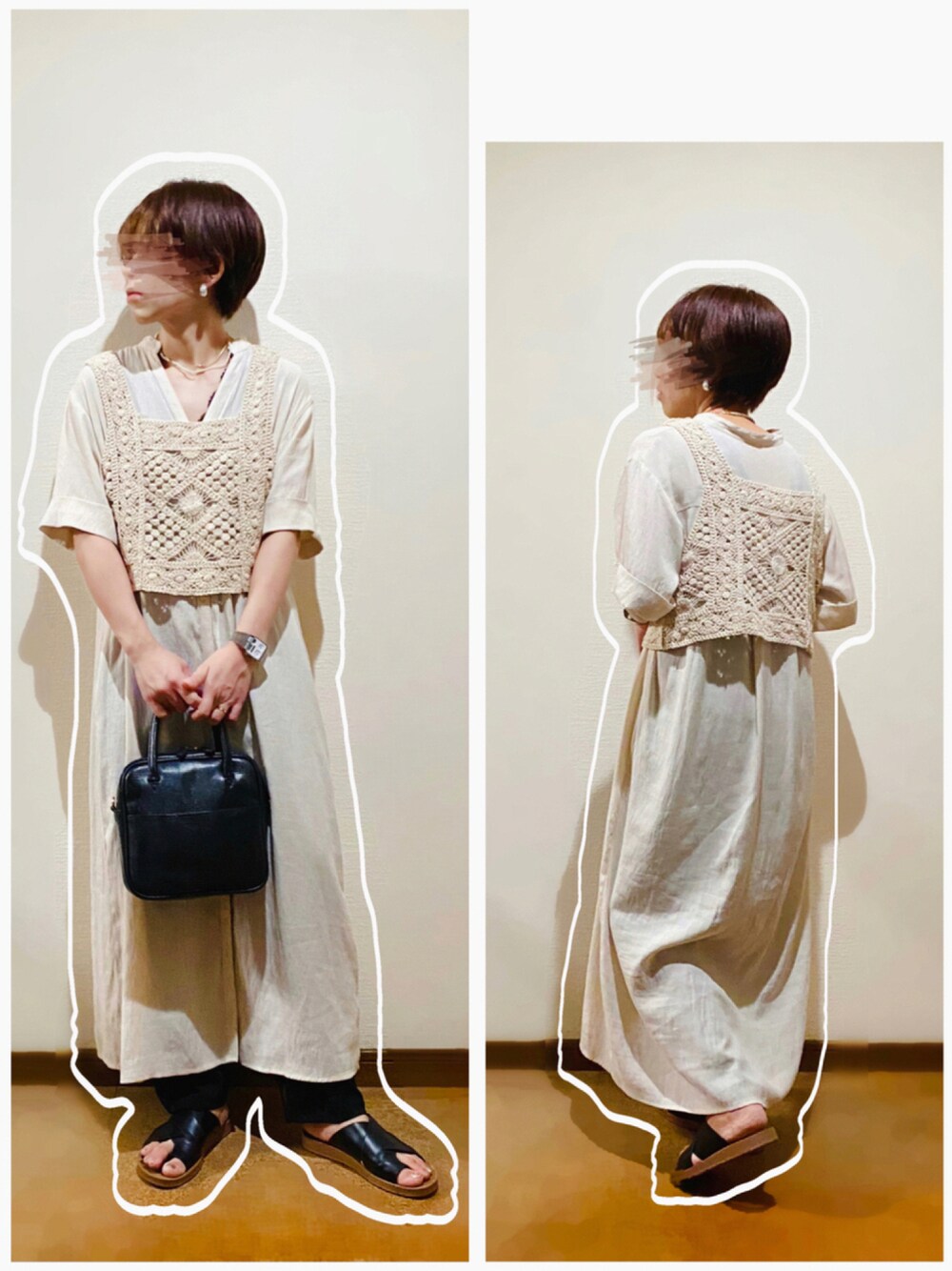 リネンワンピ×鍵編みビスチェ合わせ♡