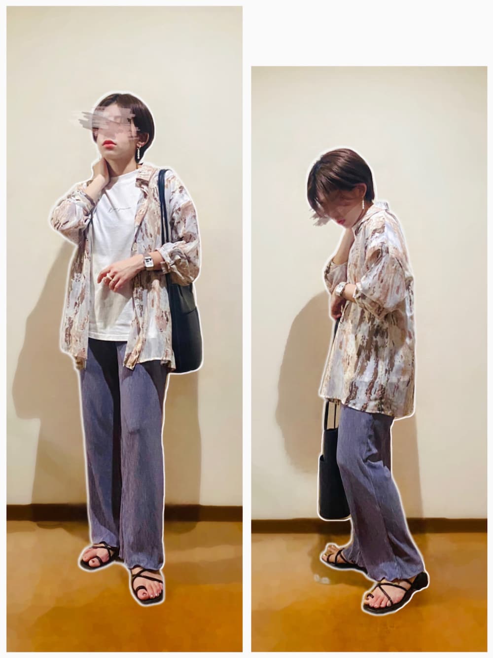 柄シャツ×楊柳カラーパンツ合わせ♡