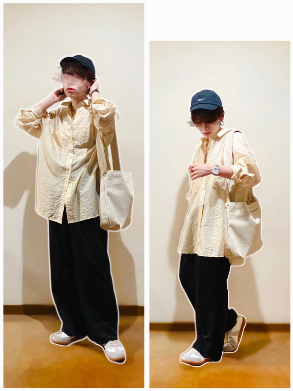 オーバーカラーシャツ×スラックスパンツ合わせ♡