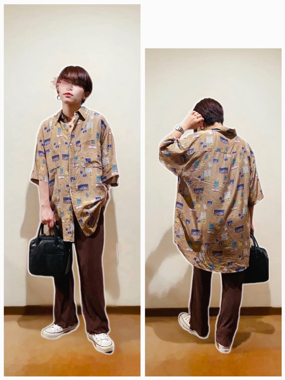 柄シャツ×楊柳リブパンツ合わせ♡