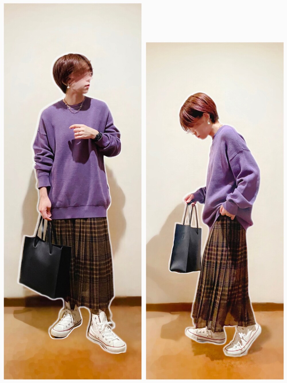 カラーニット×チェック柄プリーツスカート合わせ♡ ---コーデ日--- 2021/10/18 【24°】