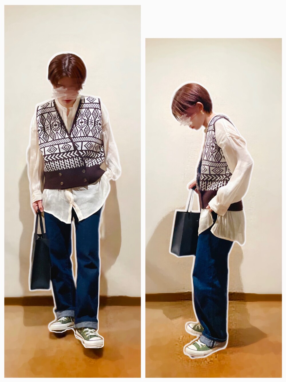 柄ニットベスト×ストレートデニム合わせ♡ ---コーデ日--- 2021.11.10 【19°】