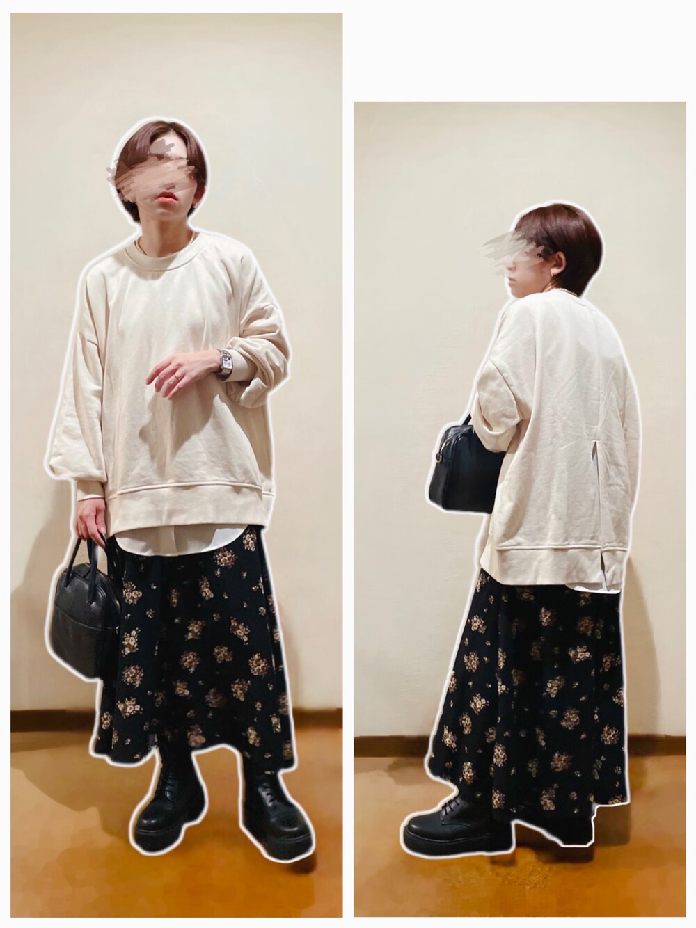 バックスリットスウェット×花柄フレアスカート合わせ♡ ---コーデ日--- 2021.11.12 【20°】