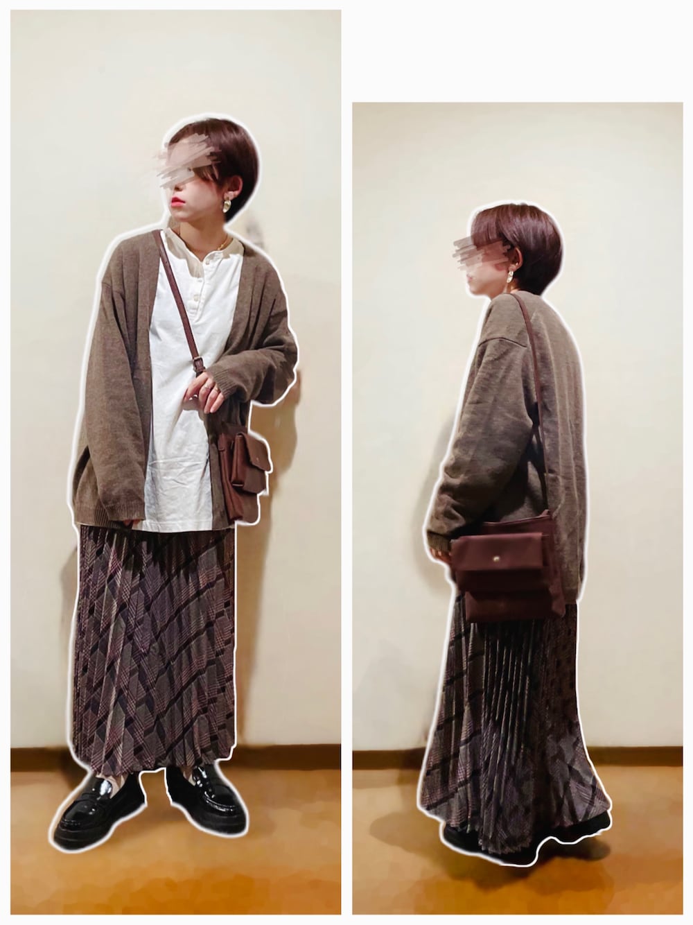 メンズニットカーディガン×アコーディオンプリーツスカート合わせ♡ ---コーデ日--- 2021.11.16 【21°】