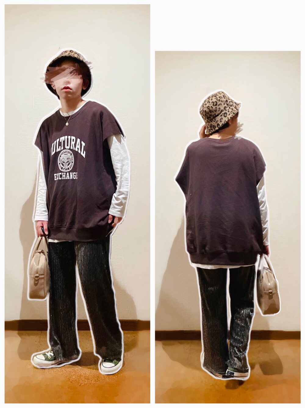 カレッジロゴベスト×ラメプリーツパンツ合わせ♡ ---コーデ日--- 2021.11.21 【24°】