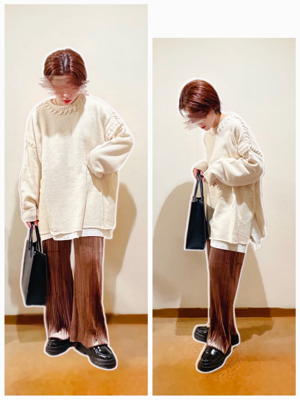ステッチニット×ベロアプリーツパンツ合わせ♡ ---コーデ日--- 2021.11.26 【21°】