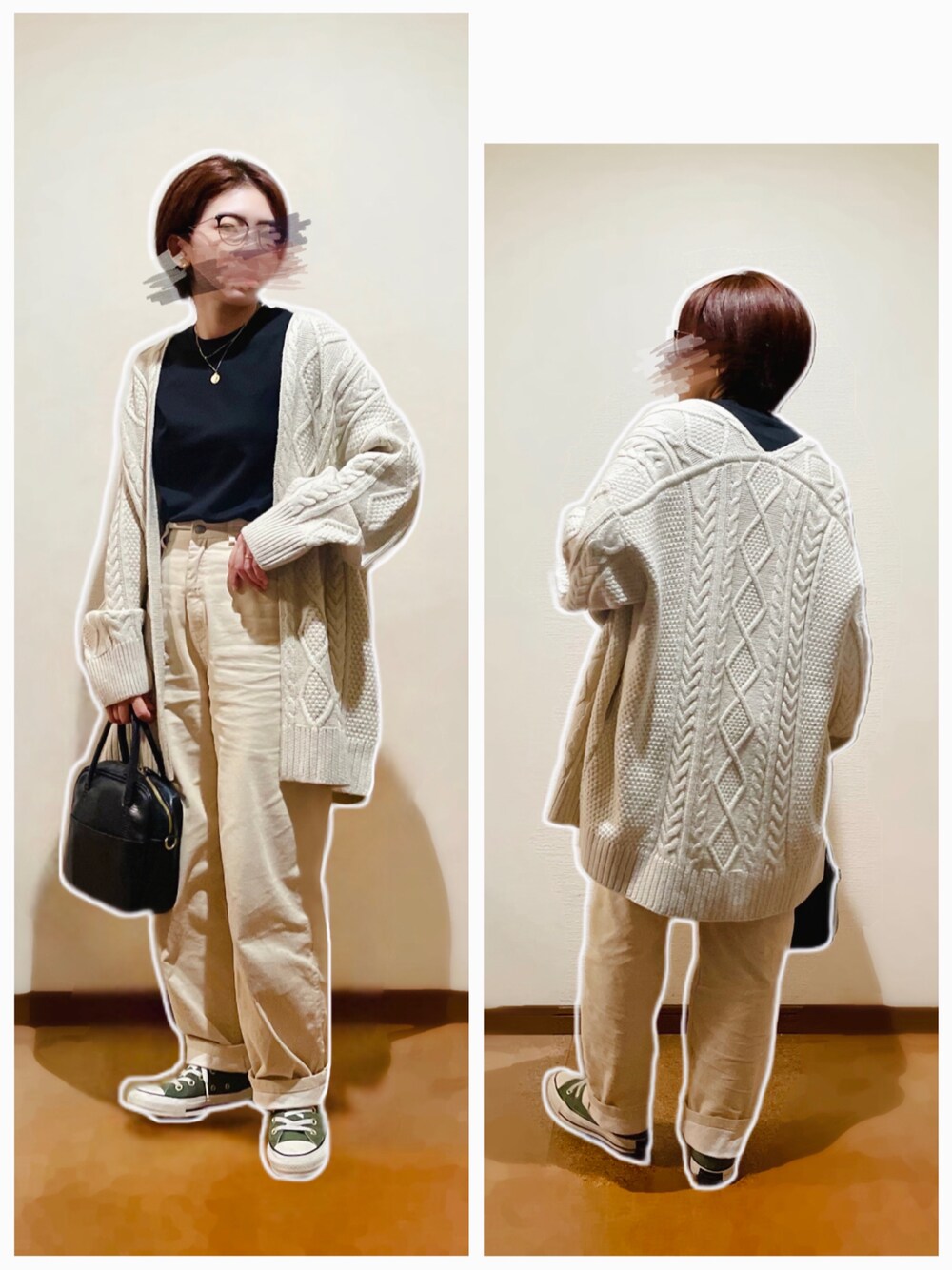 ケーブルニットカーデ×コーデュロイストレートパンツ合わせ♡ ---コーデ日--- 2021.11.27 【19°】