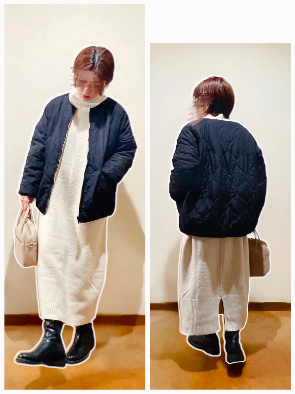 キルティングジャケット×ニットワンピ合わせ♡ ---コーデ日--- 2022.1.11 【18°】