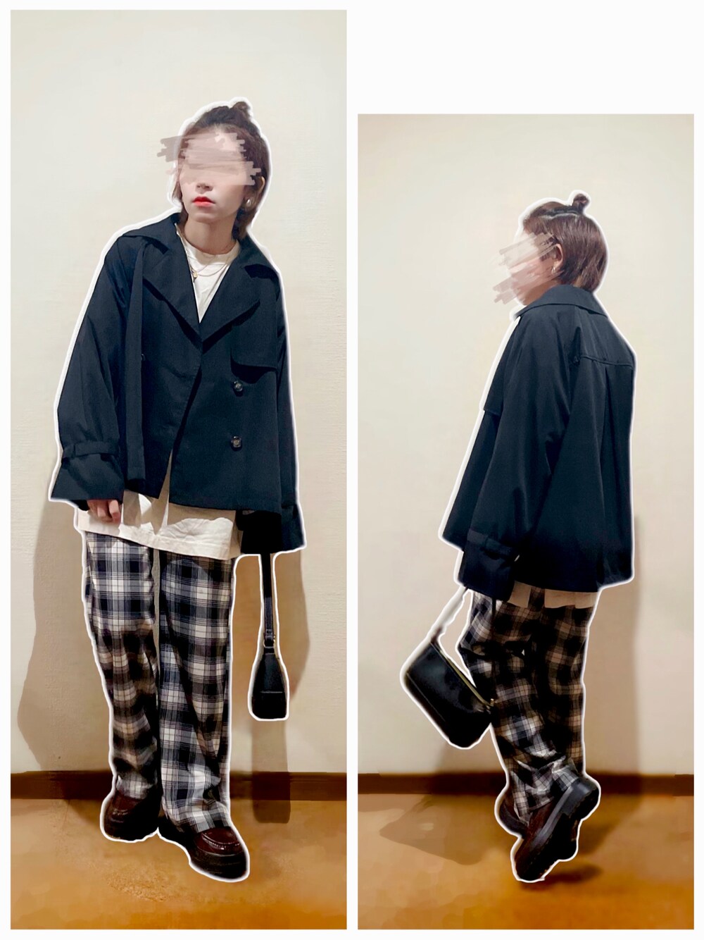 ショート丈トレンチコート×チェック柄パンツ合わせ♡ ---コーデ日--- 2022.1.30 【17°】