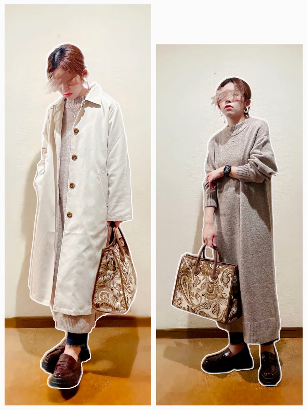 ステンカラーコート×ラメニットワンピ合わせ♡ ---コーデ日--- 2022.2.8 【20°】