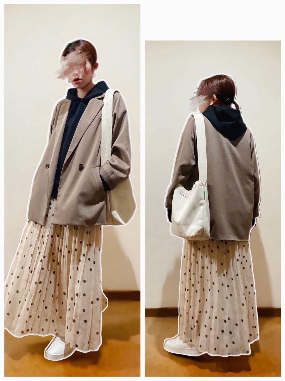 テーラードジャケット×ドット柄ニュアンスプリーツスカート合わせ♡ ---コーデ日--- 2022.2.9 【17°】
