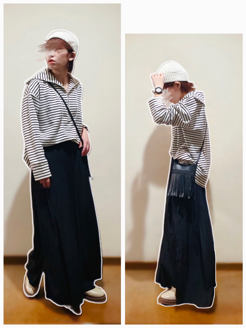 ハーフジップボーダートップス×ニュアンスプリーツパンツ合わせ♡ ---コーデ日--- 2022.3.9 【15°】