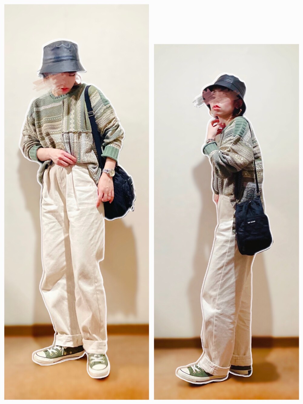柄ニット×ワイドデニムパンツ合わせ♡ ---コーデ日--- 2022.3.25 (22°】