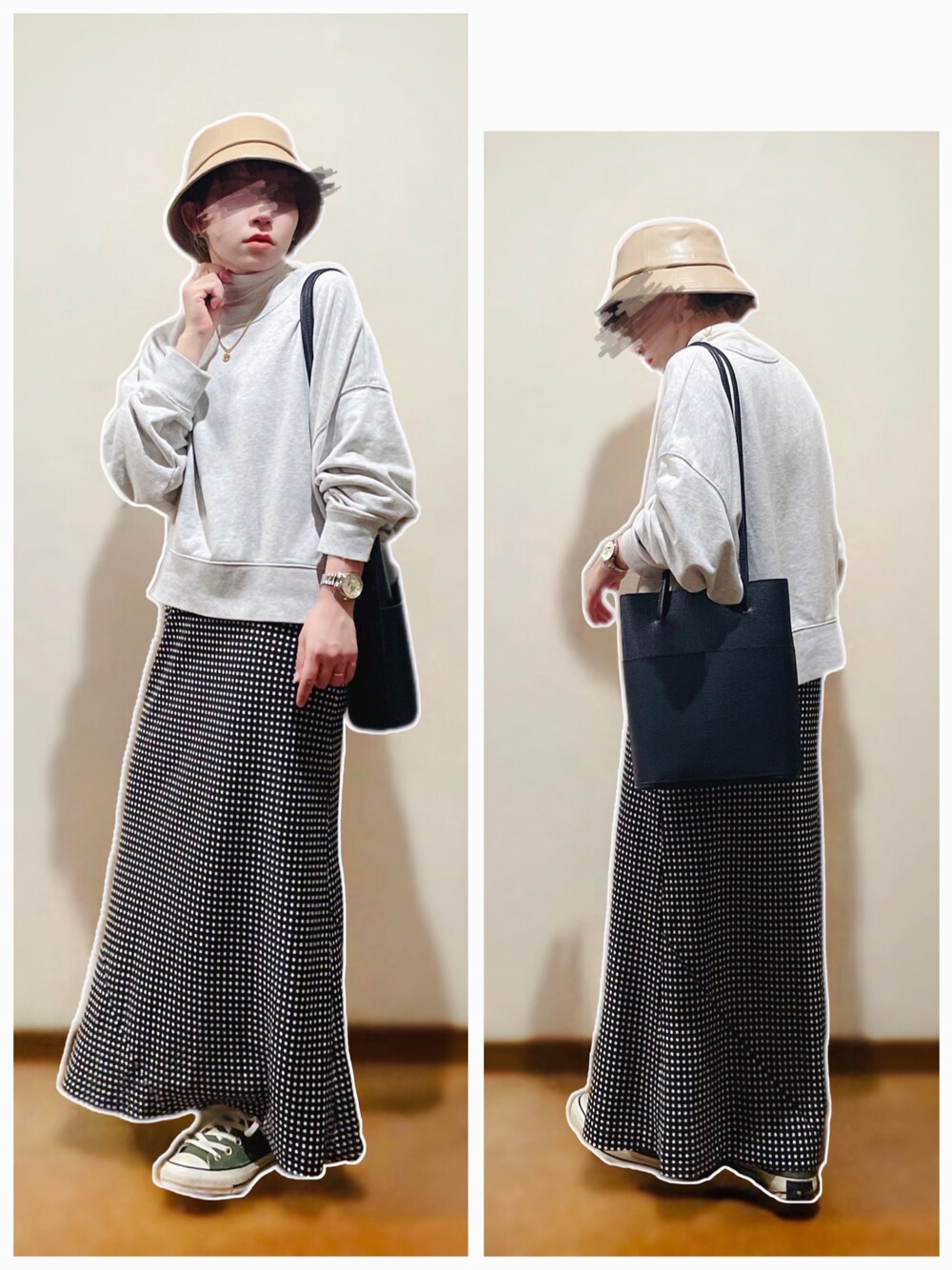 ショート丈ゆるトレーナー×ドット柄ヴィンテージスカート合わせ♡ ---コーデ日--- 2022.3.29 【19°】