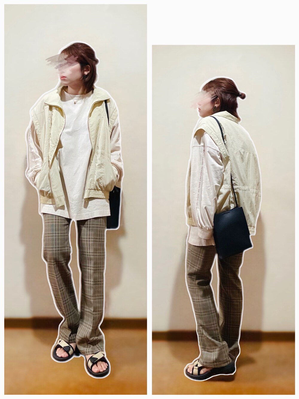 シャカシャカベスト×チェックストレートパンツ合わせ♡ ---コーデ日--- 2022.4.1 【21°】