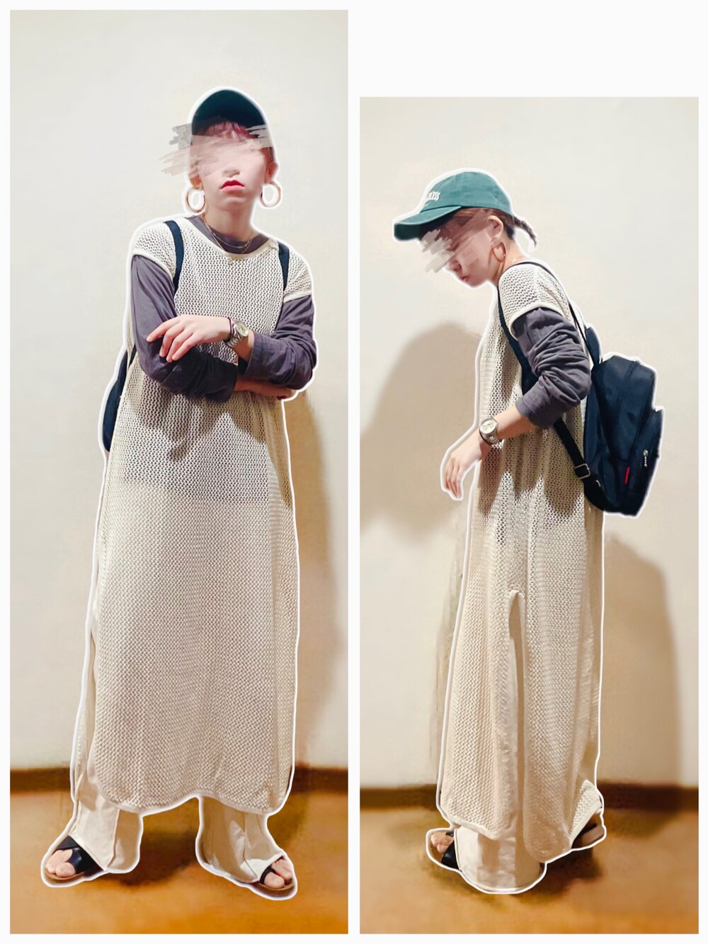 メッシュ編みロングベスト×センターラインスウェットワイドパンツ合わせ♡ ---コーデ日--- 2022.5.15 【24°】