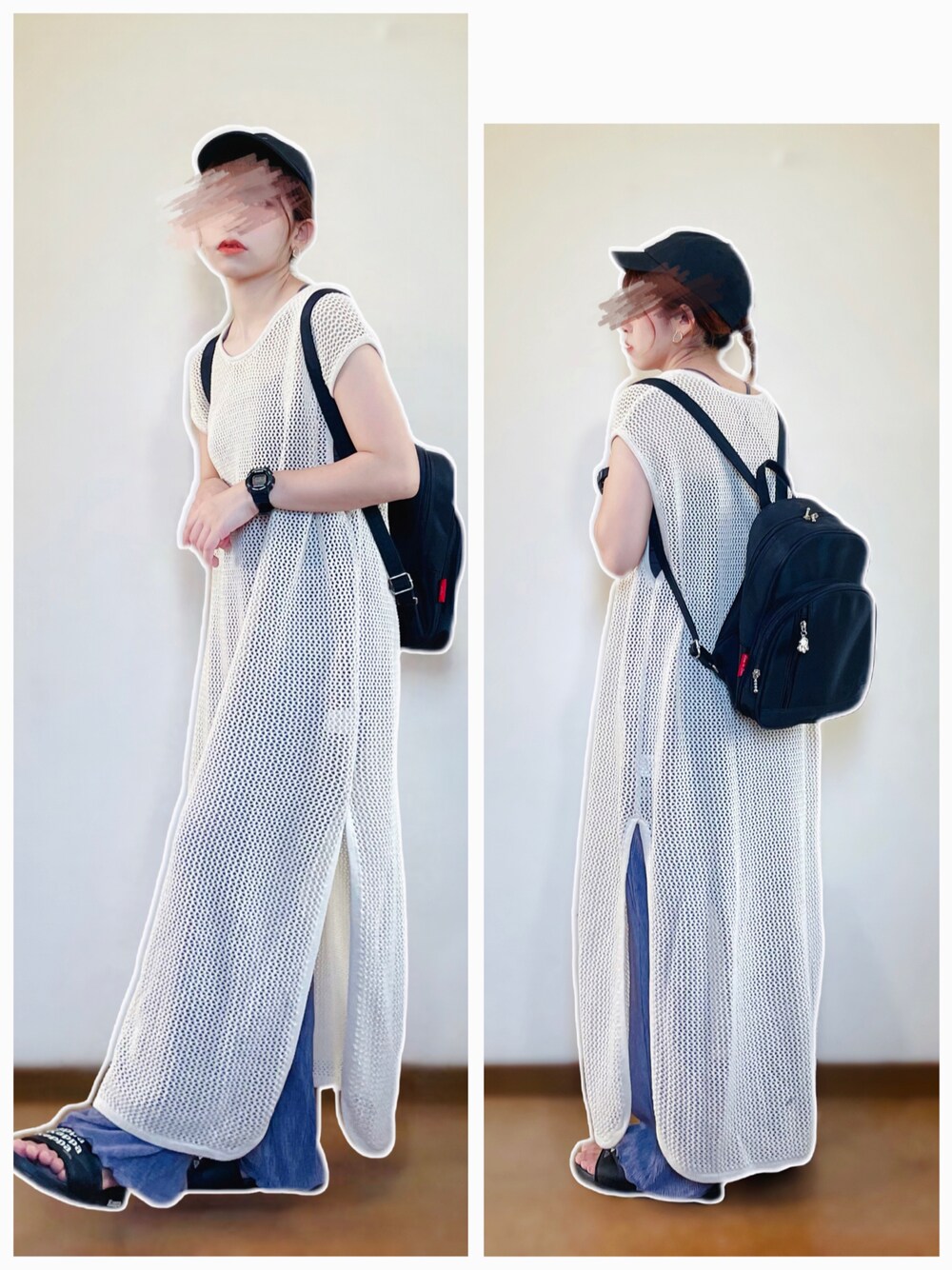 メッシュ編みロングベスト×カラープリーツパンツ合わせ♡ ---コーデ日--- 2022.07.10 【28°】