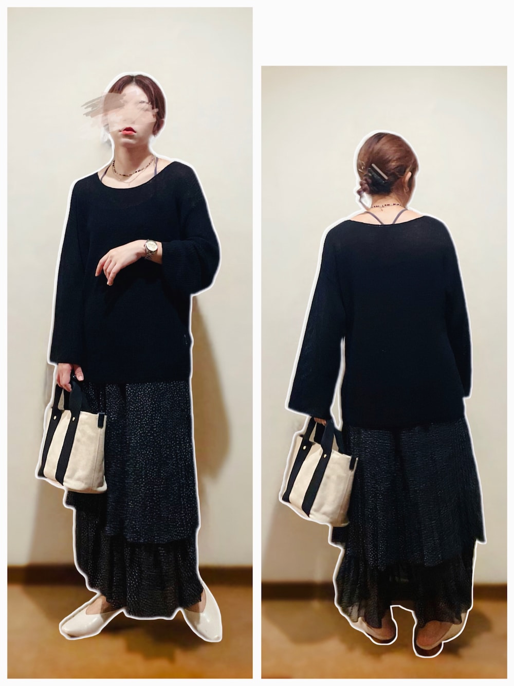 シアーニット×ドット柄ロングスカート合わせ♡ ---コーデ日--- 2022.8.11 【28°】