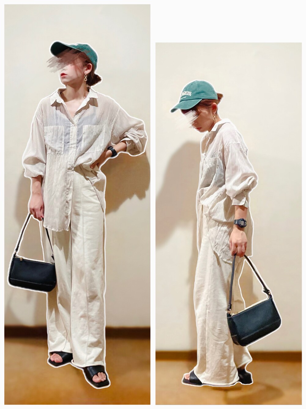 ストライプシアーシャツ×スウェットワイドパンツ合わせ♡ ---コーデ日--- 2022.09.11 【28°】