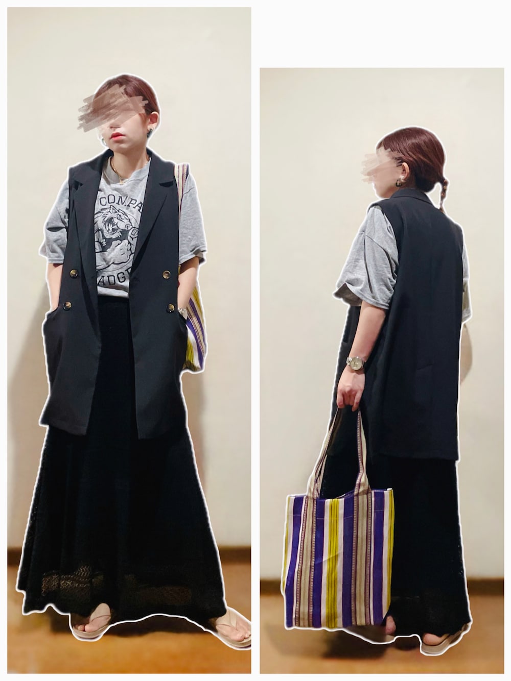 古着Tシャツ×透かし編みニットスカート合わせ♡ ---コーデ日--- 2022.09.19 【27°】