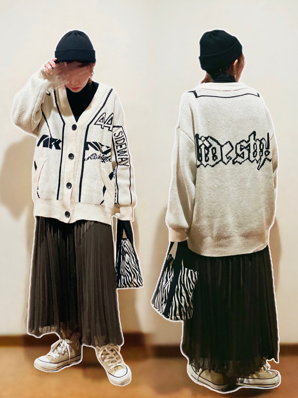 柄ニットカーデ×プリーツスカート合わせ♡ ---コーデ日--- 2023.01.03 【17°】