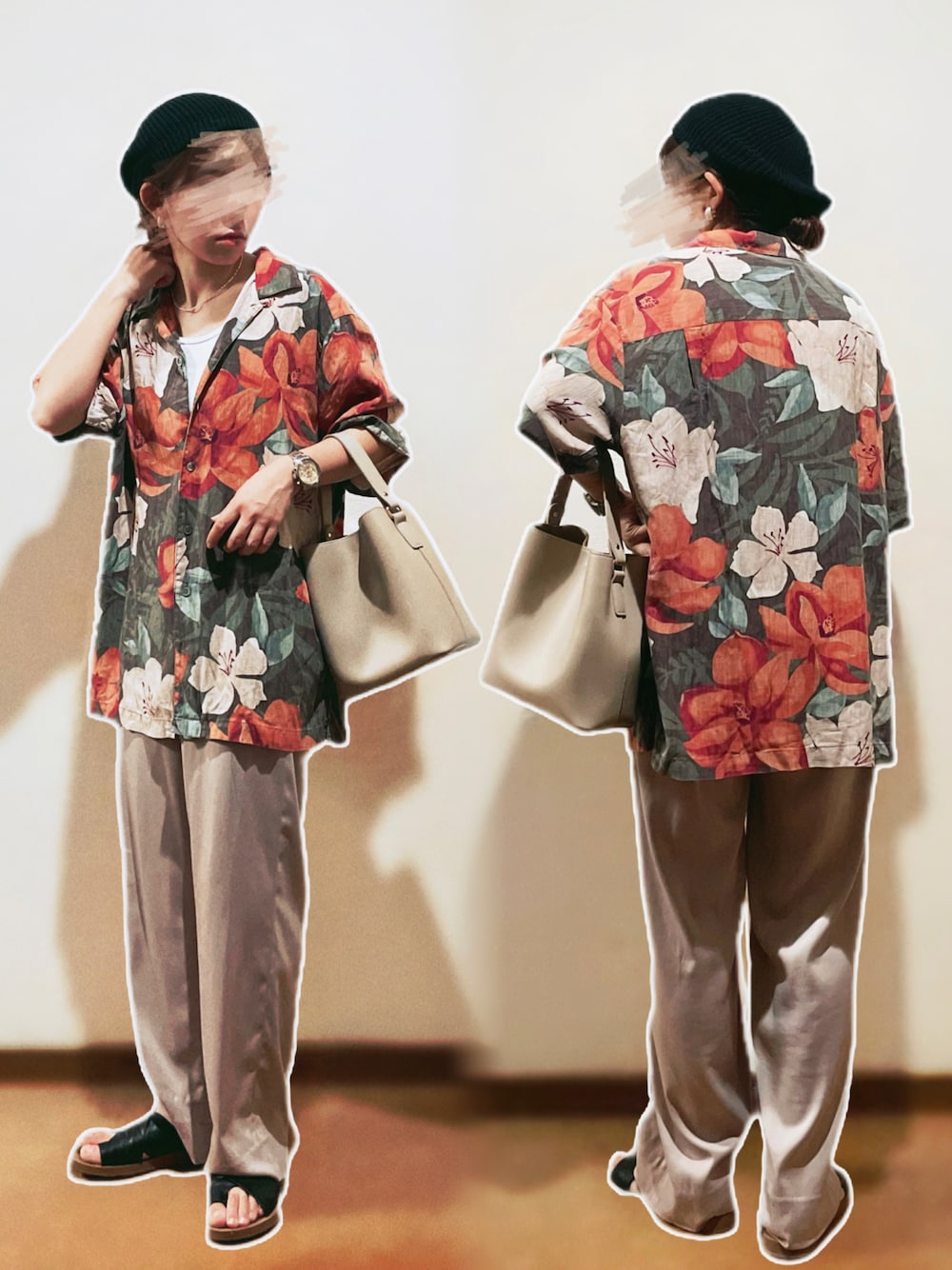 古着柄シャツ×サテンパンツ合わせ♡ ---コーデ日--- 2023.07.01 【28°】