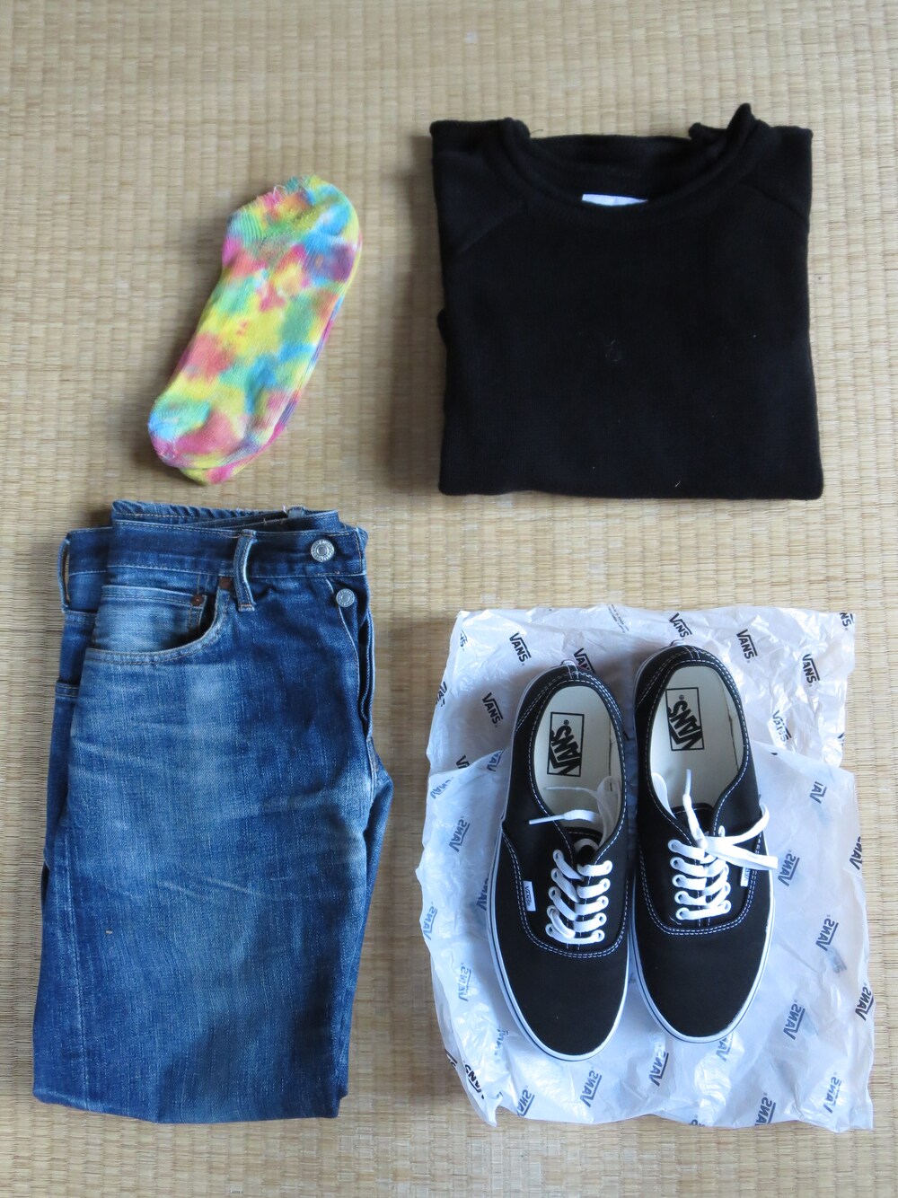 コートの下に着る薄着の格好。 コートがかなり温かいので中は動きやすい格好にして 行き先で暖房など入っているととても丁度いいです。 靴下ちょっと使い古されています。 今日は少しおめかしして飲み会にGO