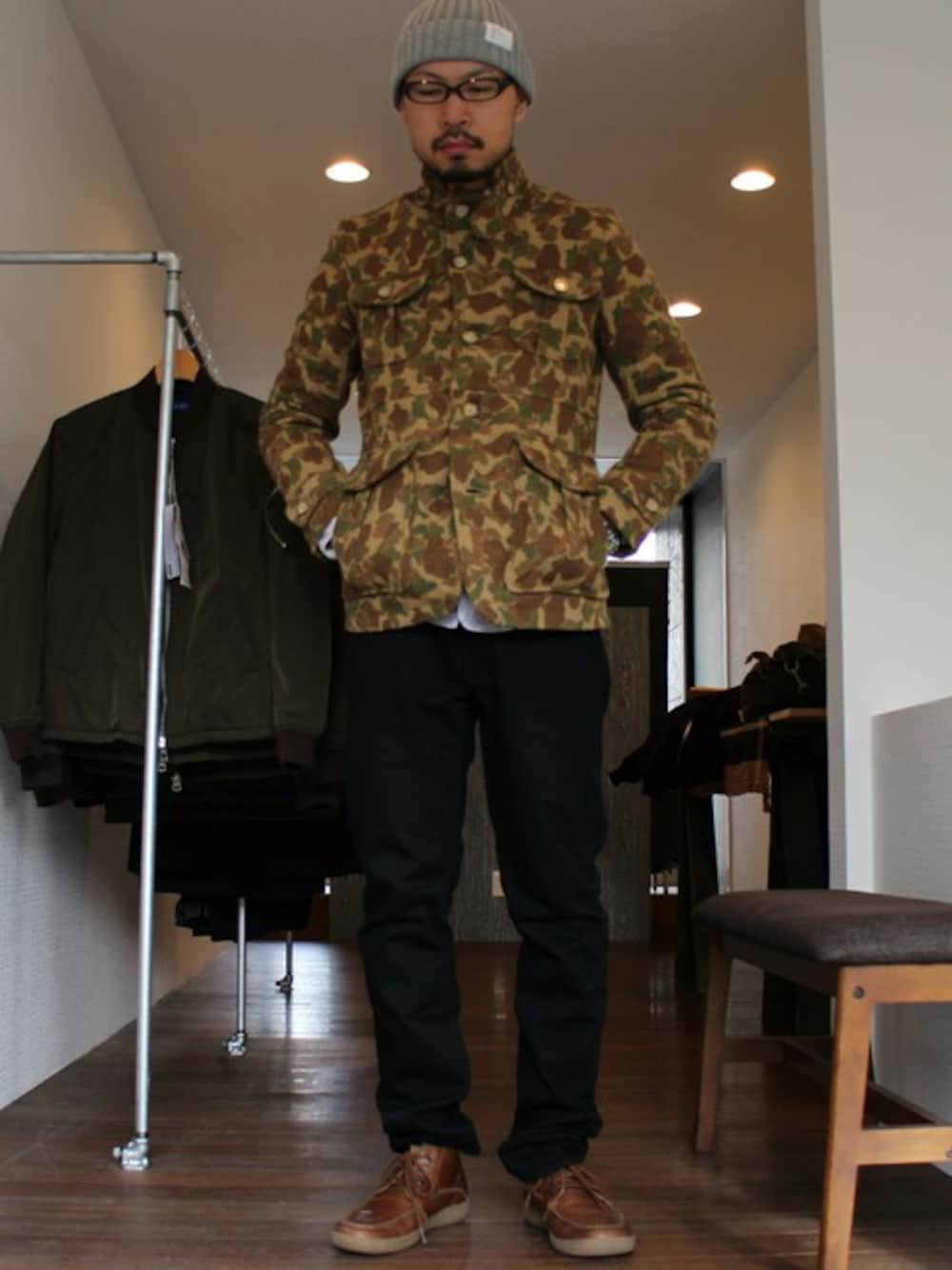 swingbirdのテーラードジャケット「WOWOOL JACKET/CAMO」を使ったコーディネート