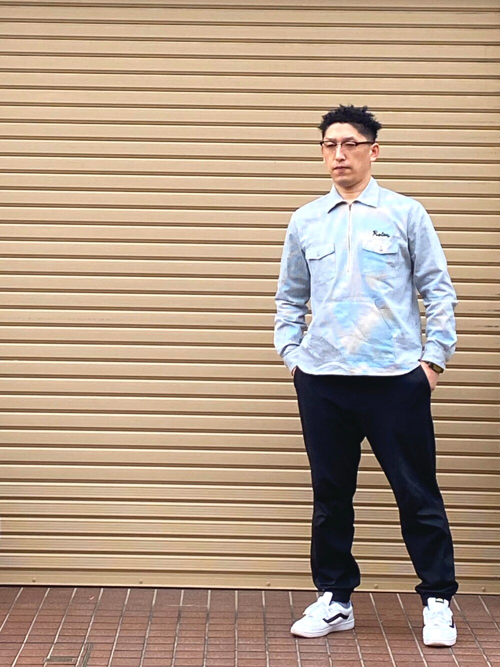 masappのシャツ/ブラウス「Half Zip Hickory Work shirt ハーフジップ ヒッコリー ワーク シャツ」を使ったコーディネート