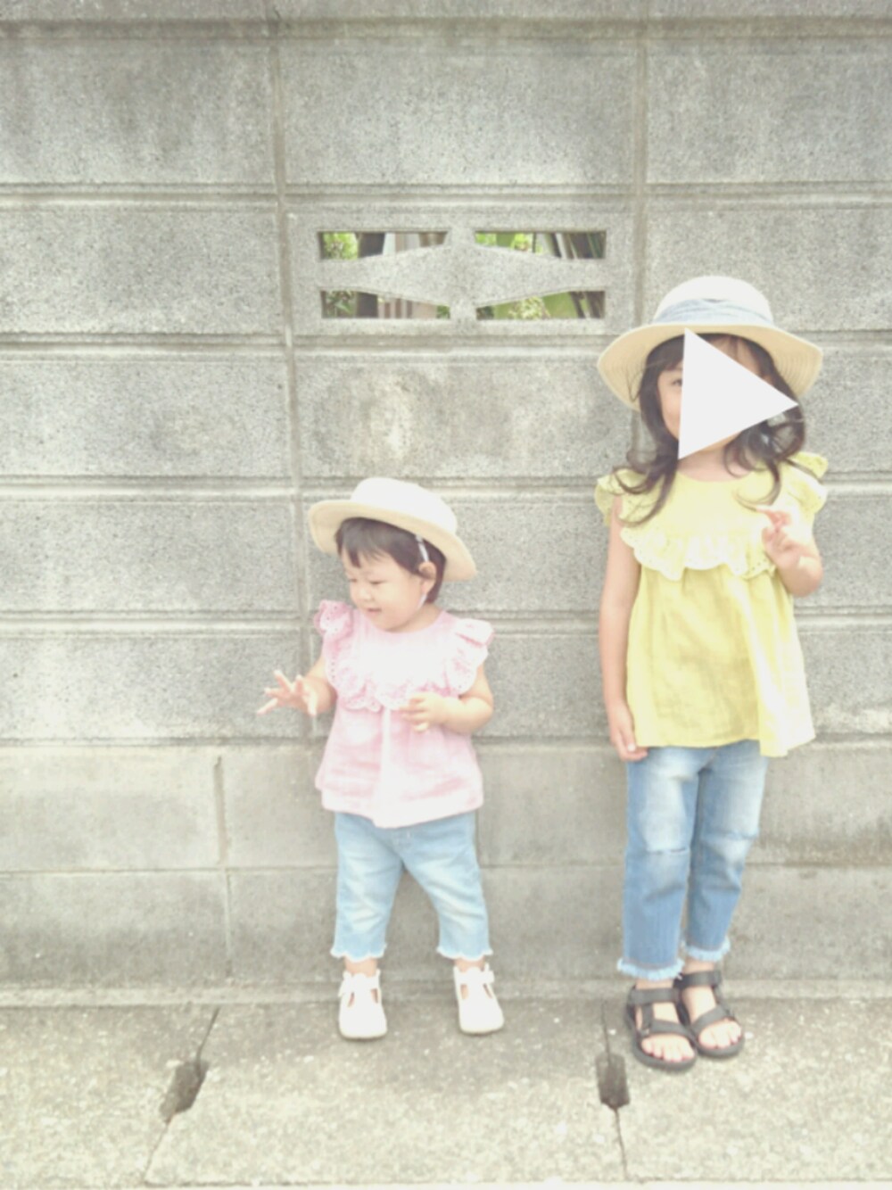 姉妹コーデVer.♡ やっぱりお揃いで着せてるとかわゆいです♥ あーちゃんのデニムは サニーランドスケープの80 サンダル→next 13.5 帽子→アプレ 48 あーちゃん この時はまだ1歳だ♥ 振り返りコーデ 継続中です!!