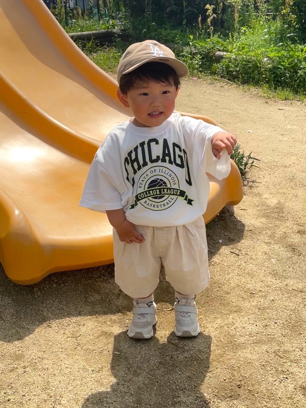 Tシャツがまだ少し大きかったため、タックインしました。 来年も着れそうです。