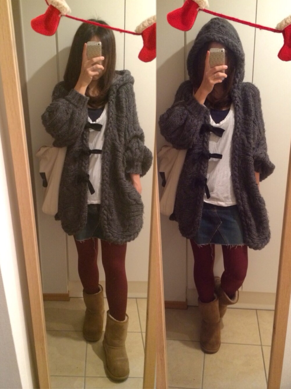 ニットアウター:avie(数年前) タンクトップ:H&M ロンT:JAMES PERSE ムートンブーツ:emu
