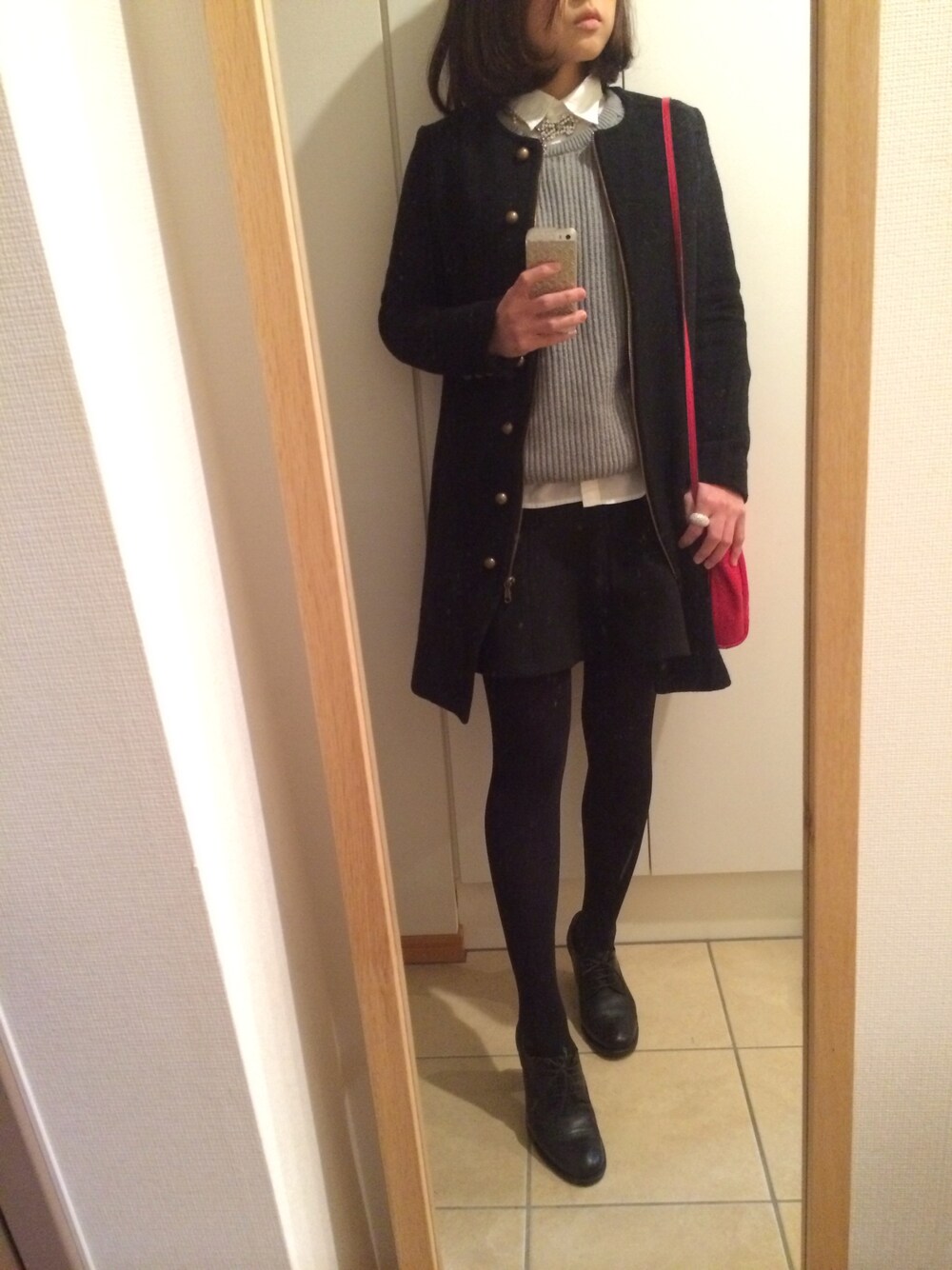 フレアスカート:ZARA ノーカラーコート:Khaju パールネックレスをチョーカー風に☆