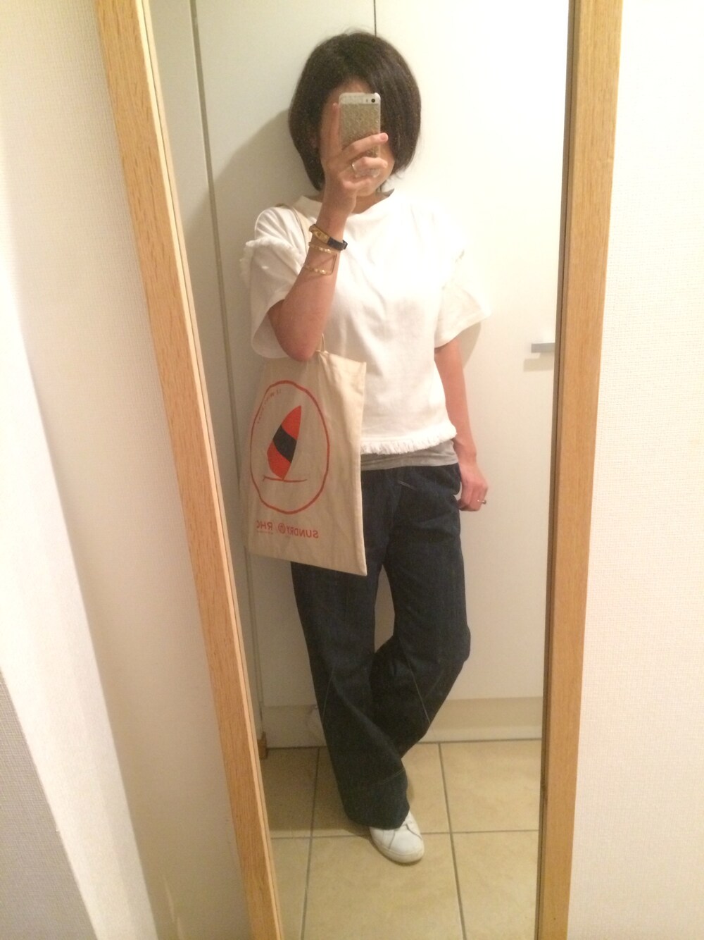 タンクトップ:H&M トートバッグ:SUNDRY(ノベルティ)