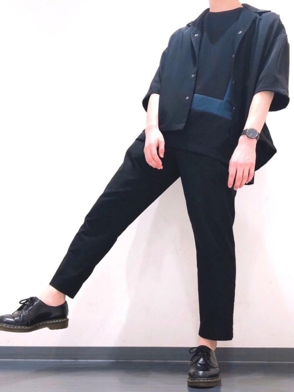 今日はオールブラックコーデです。 夏は肌で白を入れられるのでブラックコーデがしやすいですよね!☀️ 足首をだすためにアンクルパンツです。 重ね着がしにくい分生地に気を付けています。