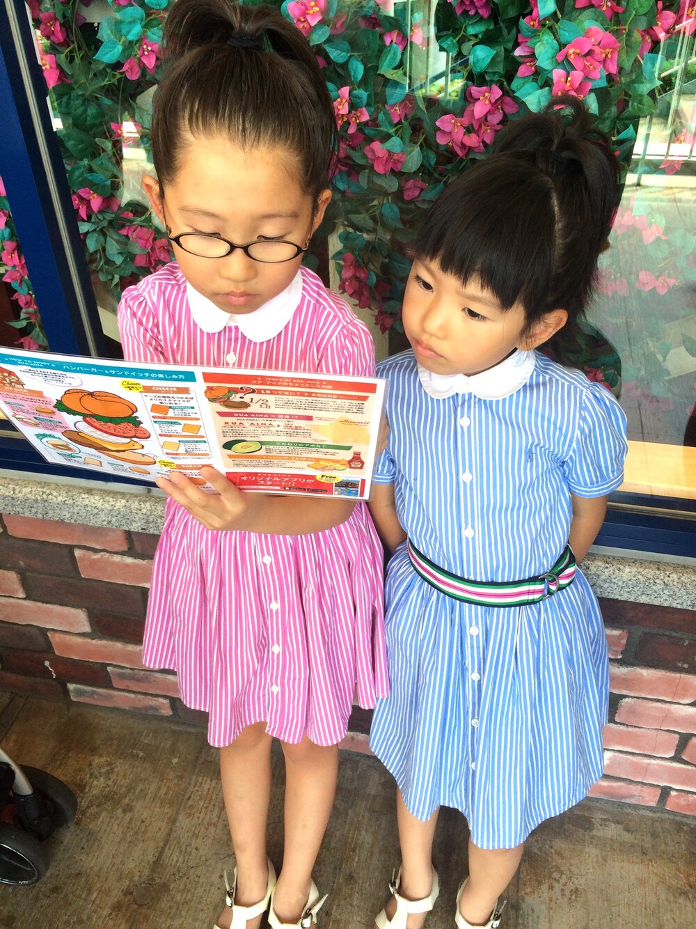 りんくうアウトレットでお買い物♪ お昼は美味しいハンバーガーいただきました❤️ どれにしようか選ぶ姉妹。