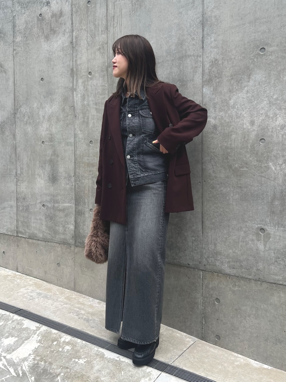《jacket》 モードなテーラードジャケット。ハリ感はありますが、がっちりとしすぎず普段使いしやすいです。同素材のサスペンダーパンツとのセットアップもおすすめです。 《jacket》 ベーシックに着まわせるデニムジャケット。コンパクトなのでインナーは薄手のカットソーは着られるサイズ感です。コートやジャケットインがしやすく冬まで長くお使いいただけます。 《skirt》着用38サイズ 深めのロングスリットが入ったデニムスカート。絶妙な色落ち感のグレーほ合わせるアイテムを選ばずロングシーズン使えます!