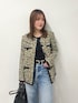 sayaka(Whim Gazette)のノーカラージャケット「リネンレオパードジャケット」を使ったコーディネート